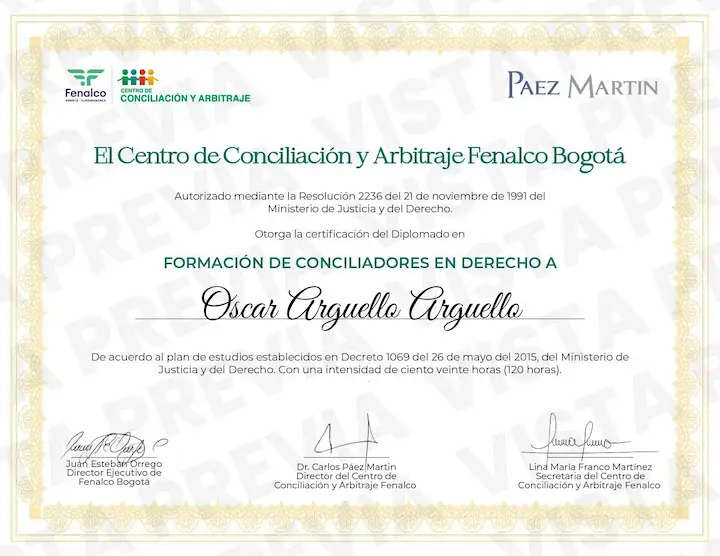 Abogado con especialización en derecho procesal, probatorio y oralidad judicial y un diplomado en conciliación que complementa la capacidad para manejar disputas de manera profesional y conciliadora, dando un enfoque en la conciliación como herramienta para resolver conflictos de manera efectiva y amigable.