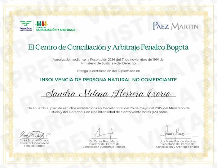 Egresada de la Facultad de Derecho de la Universidad Católica de Colombia, especialista en derecho de familia de la Universidad Nacional de Colombia, conciliadora con más de 15 años de experiencia y operadora de insolvencia para persona natural no comerciante desde el 2021.