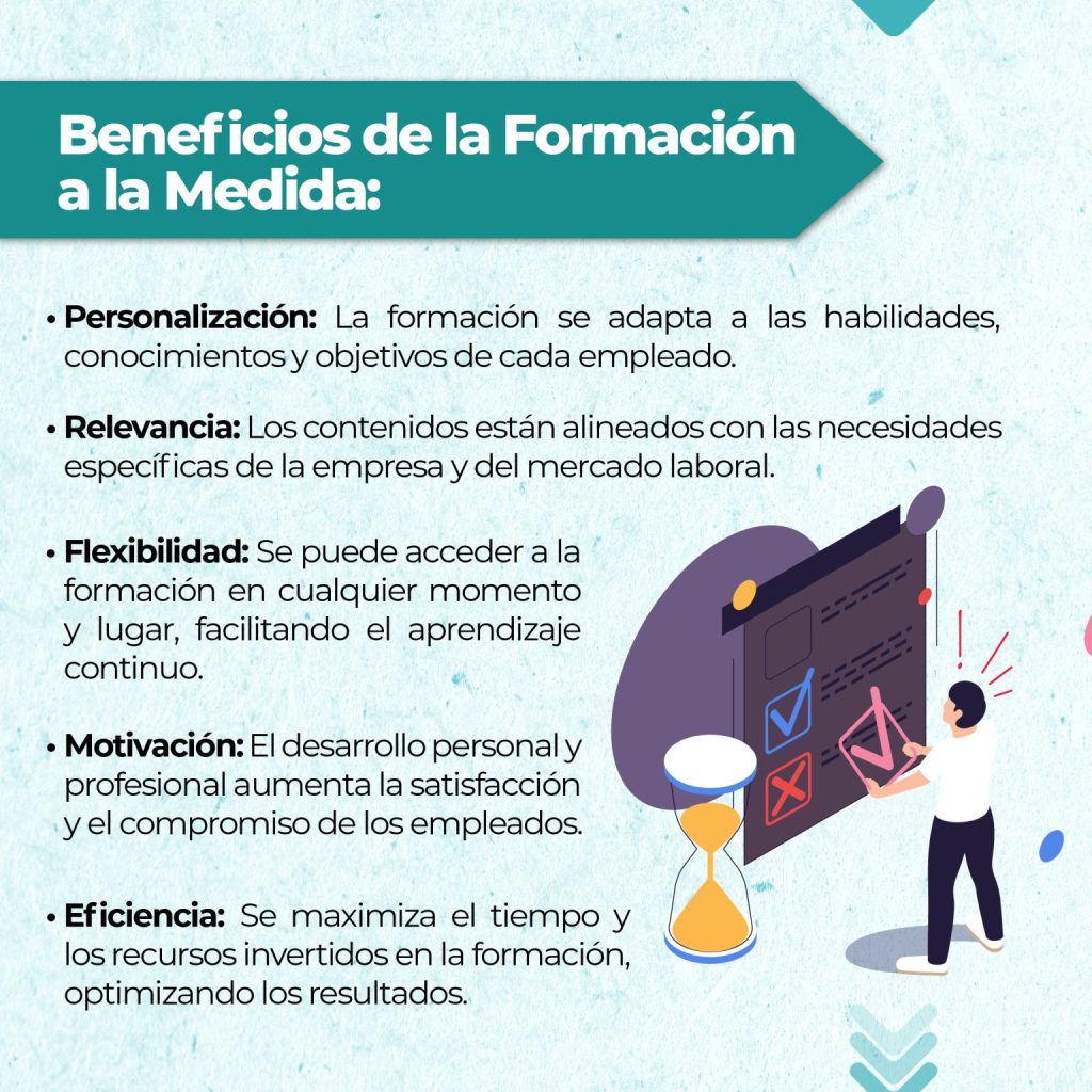 La formación a medida es una inversión estratégica que impulsa el crecimiento y la competitividad de las empresas, al tiempo que potencia el desarrollo profesional y el bienestar de los empleados.