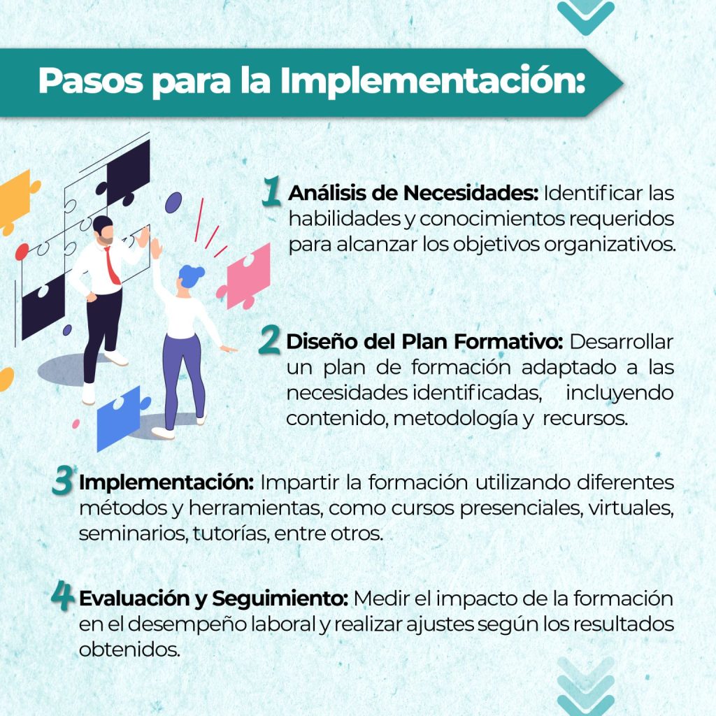 - Implementación: Impartir la formación utilizando diferentes métodos y herramientas, como cursos presenciales, virtuales, seminarios, tutorías, entre otros.